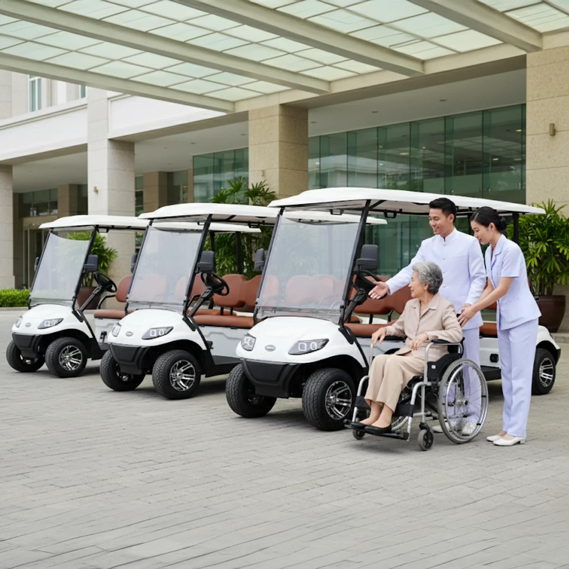 หลายโรงพยาบาลมีพื้นที่กว้างและมีหลายอาคาร ผู้ป่วยและญาติมักต้องเดินทางระหว่างตึกหรือแผนกต่าง ๆ การมี รถกอล์ฟโรงพยาบาล สำหรับรับ-ส่งผู้มาใช้บริการ โดยเฉพาะกลุ่มผู้สูงอายุและผู้ป่วยที่ไม่สะดวกในการเดินไกล จะช่วยลดความเหนื่อยล้าและสร้างความประทับใจต่อการให้บริการได้เป็นอย่างดี
